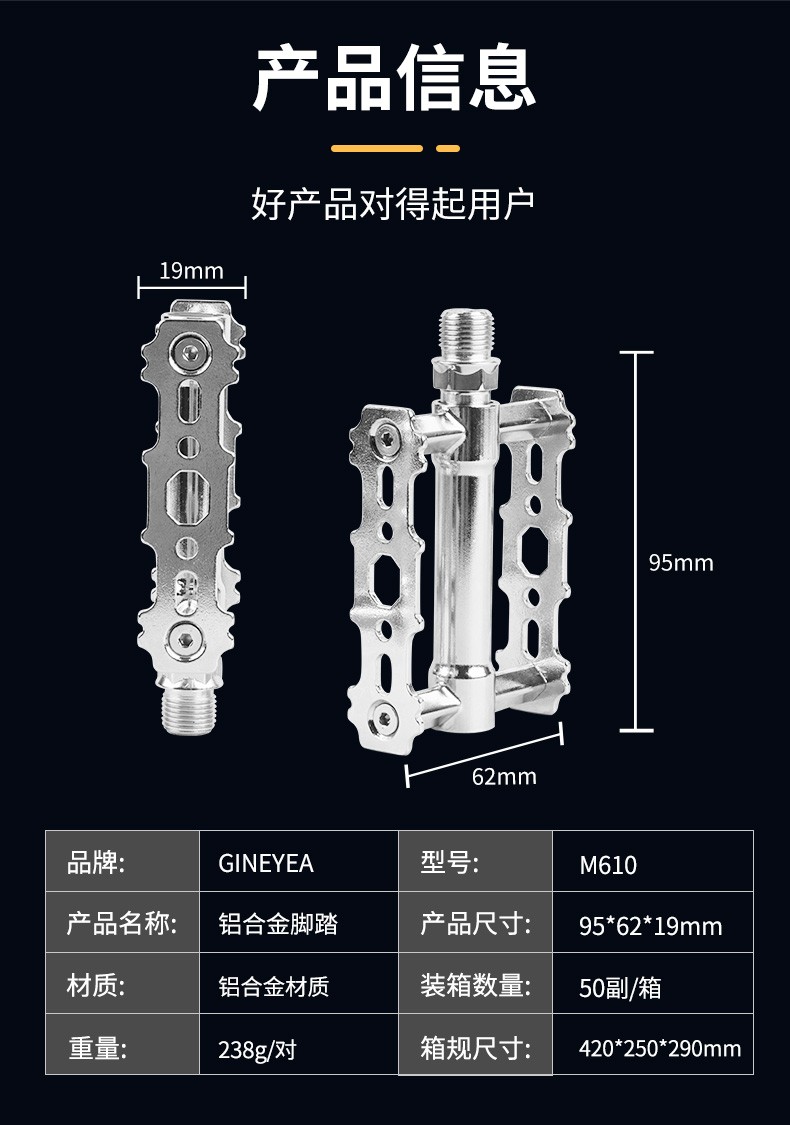 Gineyea碳纖維腳踏自行車(chē)公路車(chē)山地車(chē)防滑釘踩面鈦合金軸腳踏