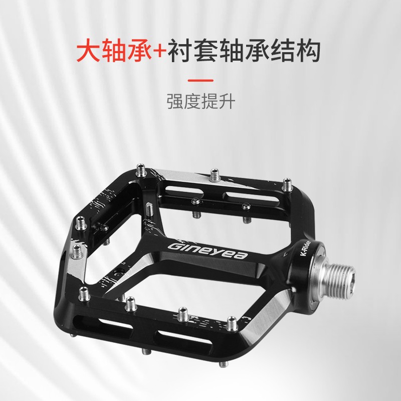 景曄新款C6系列外觀設計比較個性化,造型設計相同,采用嵌套軸心的一個設計,所有邊角尖銳凸起除都經過細致打磨,鋁合金CNC本體,珞鉬鋼軸心,騎行更省力,采用大軸承+襯套的一個設計,尺寸分大中小,大號用于速降,中號用于CX,林道,泵道,小號用于童車