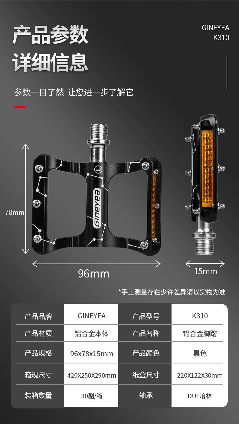 深圳景曄自行車培林腳踏鋁合金CNC腳踏密封軸承自行車騎行配件