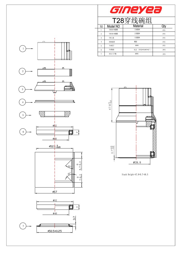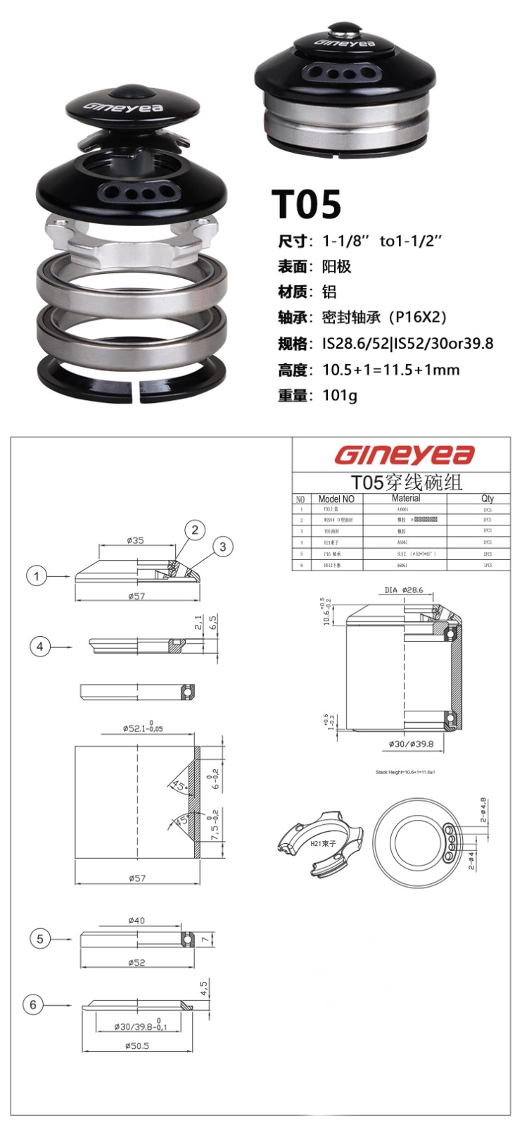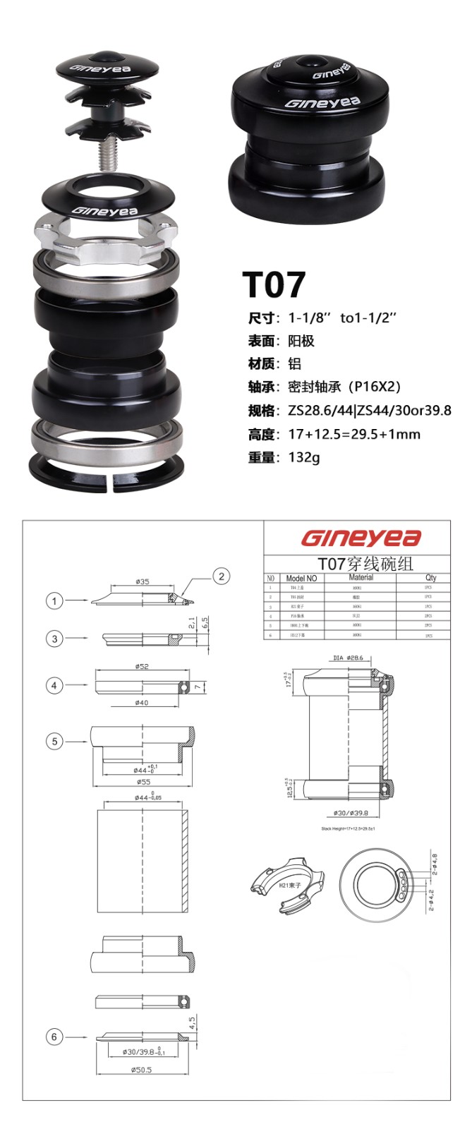 景曄直管穿線碗組44-44/52-52/改裝內(nèi)走線穿線密封培林外置腕組