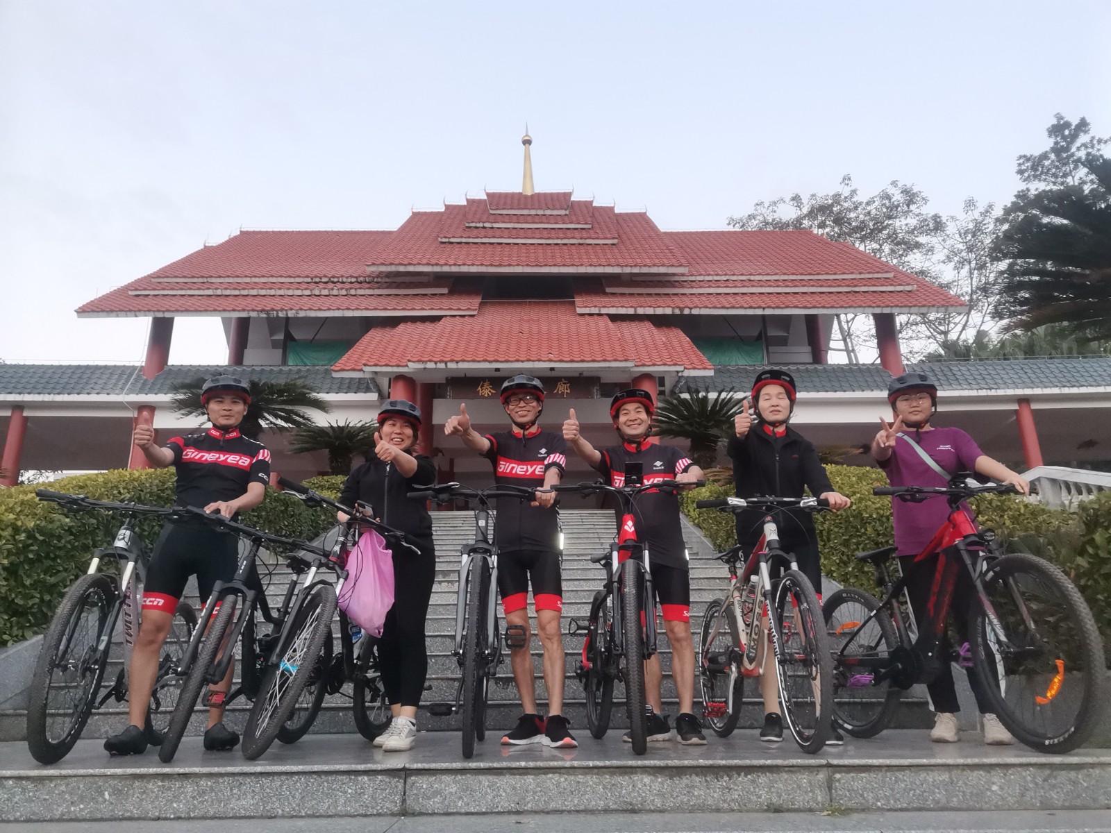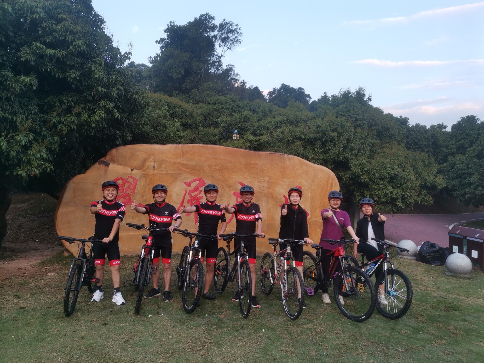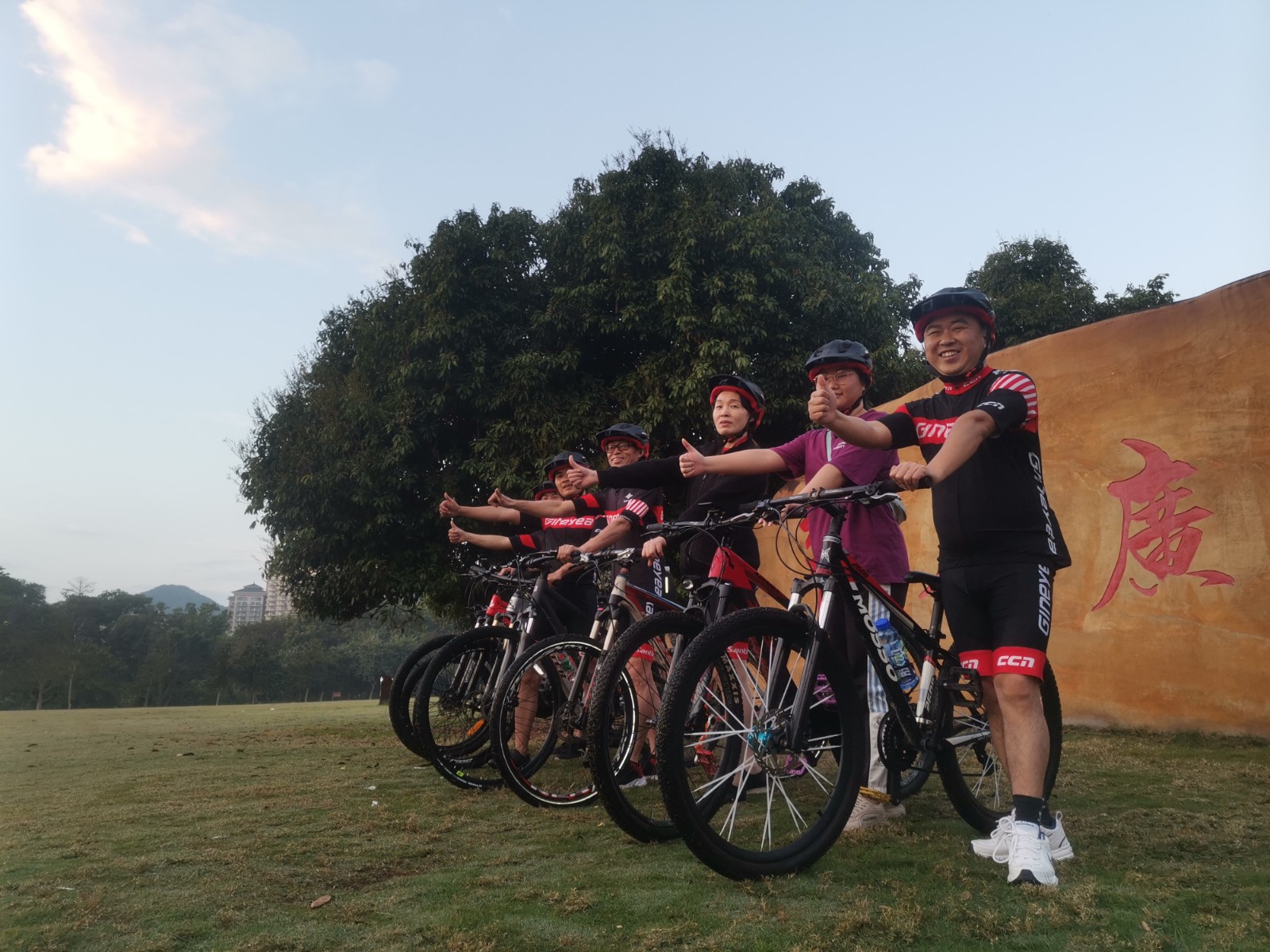 早上5點半開始集合,景曄車隊一路從廠區內開始騎行前往大屏障森林公園。沿途微光驟亮,身穿黑紅相間騎行服的隊員們猶如黎明的光輝穿越薄霧一路前行,在景色優美的公園綠道體驗超越自我的騎行樂趣。