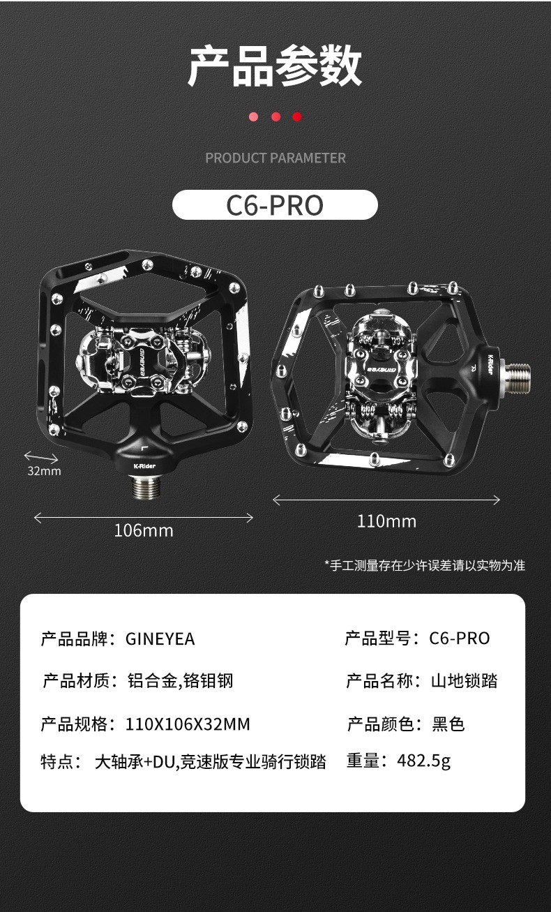 景曄新款C6Pro山地車鎖踏 自行車腳踏鋁合金大軸承DU山地車腳踏板